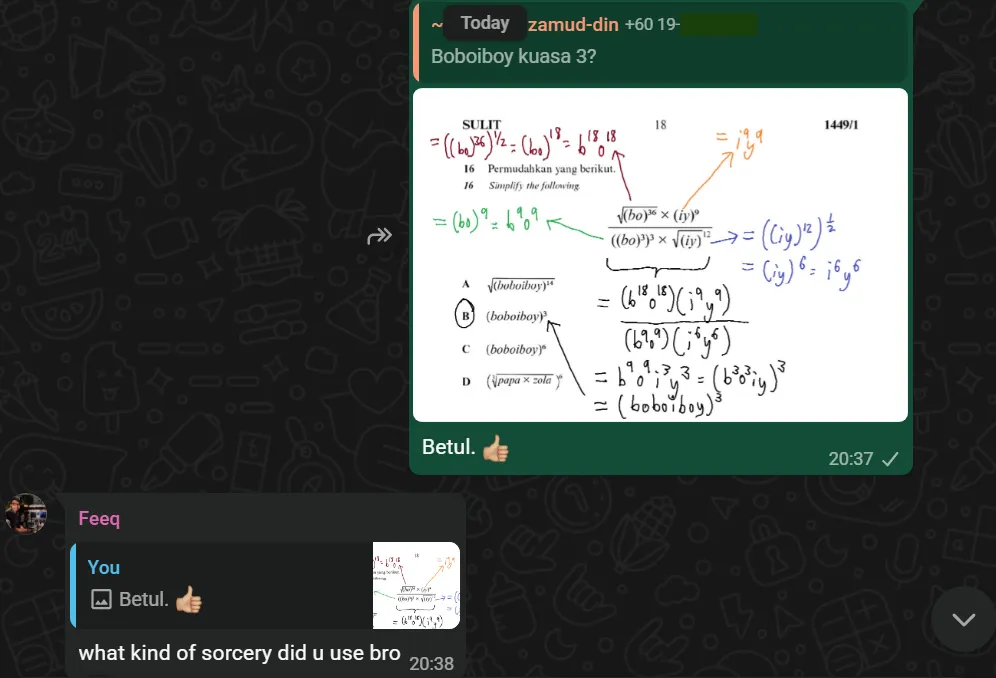 Teaching experience of 1+ years – With several students not only for IGCSE/SPM Maths and Add Maths, but also for CIE A-level Maths and Further Maths.